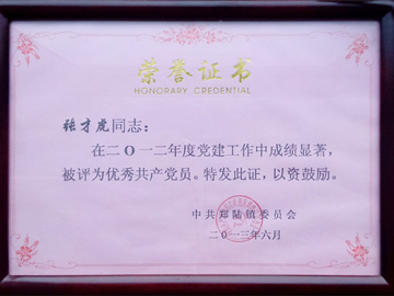 共產黨員榮譽證書(shū)
