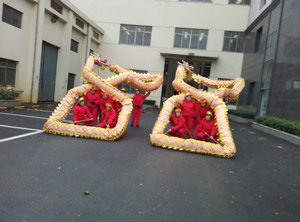 時光飛逝,日月如梭,馬年悄然離去(qù),不(bú)知不覺迎來了(le)羊年,91福利视频在线观看公司跟往年一(yī)樣準備了很多(duō)的炮竹,舞龍(lóng)的隊伍也早(zǎo)已準備就緒, 隨著8點18分點燃第一個炮竹,龍燈隊(duì)就在鑼鼓喧天聲中舞進了公司大(dà)門。