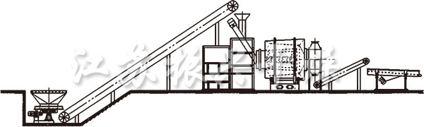 ^後幹(gàn)料進入外筒降溫冷卻到50~60℃之間再排出烘幹機