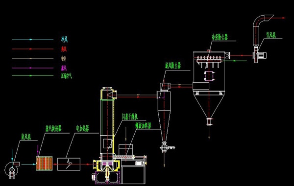 熱空氣由進風口以(yǐ)適宜的噴動速度從幹燥機底部進入攪拌粉碎(suì)幹燥室,對物(wù)料強(qiáng)烈的剪切、吹浮、旋轉作用,於是物料受到(dào)離心、剪切、碰撞、磨擦(cā)而被微粒化(huà),強化(huà)了傳質傳熱。在幹燥機底部,較大較濕顆粒團在攪拌器的作用下被機械(xiè)破碎(suì),濕含量較低、顆(kē)粒度較小的顆粒被旋轉氣流夾帶上升,在上(shàng)升的過程中進一步幹(gàn)燥,由於氣固相作旋轉流動,固相慣性大於氣相,固氣兩相間的相對速度(dù)較大,強化(huà)兩相間的傳熱效果,所以該機幹燥強度高。