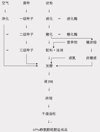 賴氨酸硫酸鹽生產方法和工藝流程: